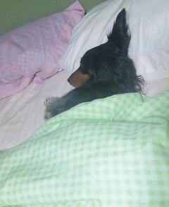 私がみてないすきを狙って、お布団の真ん中を陣取るのはやめてください。